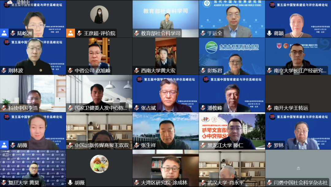 2022年12月2日,由中国社会科学评价研究院主办的“第五届中国智库建设与评价高峰论坛”召开。来自中国社会科学院、中共中央党校(国家行政学院)、中国科学院、部委所属专业性智库、省市级地方社科院和党校行政学院、高校智库、企业智库、社会智库以及全国高校的智库管理部门代表等百余名专家学者通过在线方式出席本届论坛。高校区域国别学人才培养与学科建设联盟副理事长、区域与国别研究院执行院长李毅教授、院长助理江筱倩博士应邀参会。